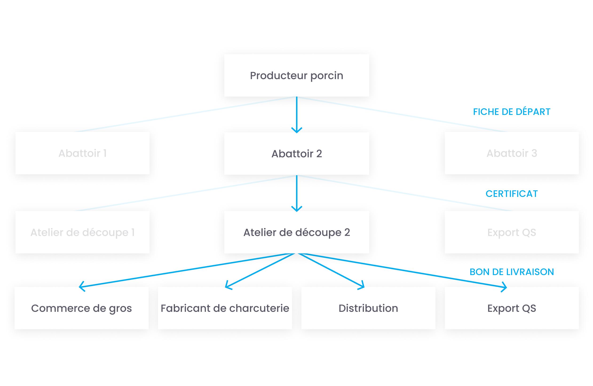 Il s’agit respectivement la fiche de départ pour les producteurs, le certificat pour les abattoirs et le bon de livraison pour les ateliers de découpe.